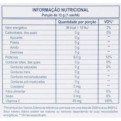| Valor energético | 36 kcal = 15kJ | 2% |
