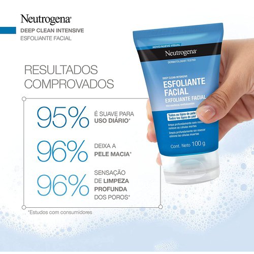 - Conta com microesferas que proporcionam uma esfoliação suave no rosto.