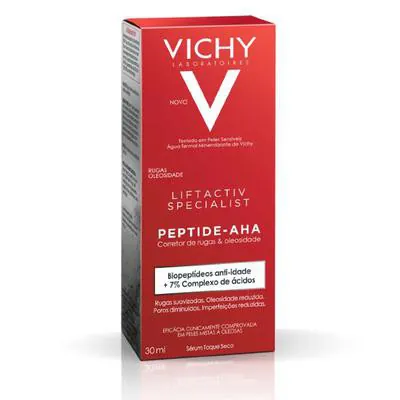 O Vichy Sérum Liftactiv Specialist Peptide-AHA 30ml é um tratamento dermatológico avançado que atua nos principais sinais do envelhecimento da pele. Com fórmula concentrada e inovadora, este sérum combina peptídeos anti-idade, ácidos esfoliantes (AHA) e vitamina C para oferecer uma pele visivelmente mais jovem, firme e radiante em poucas semanas de uso.